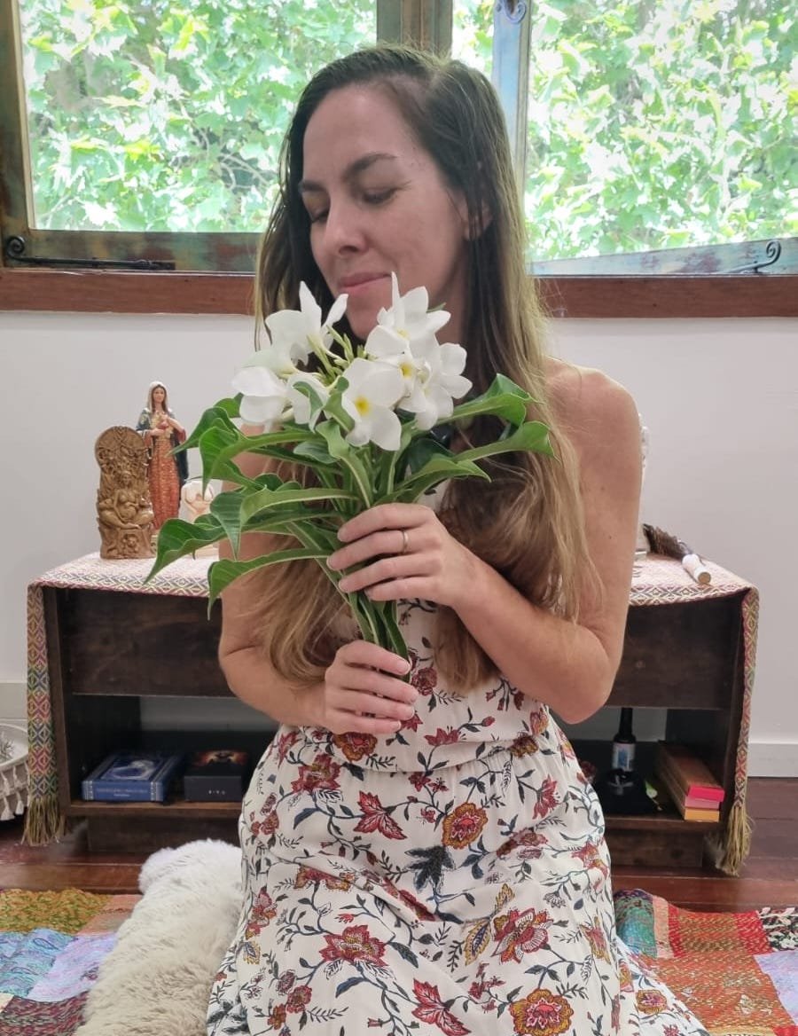 She is a certified holistic therapist trained in Reiki, Sacred Feminine Kundalini Activation and Transcendental Meditation, and holds certifications as a Life Transitions Doula and trauma-informed Holistic Counsellor. Her path has been shaped through studies with Mayan and Celtic shamanic traditions, as well as time spent living in Nepal and Europe, deepening her understanding of ritual, lineage and spiritual practice.